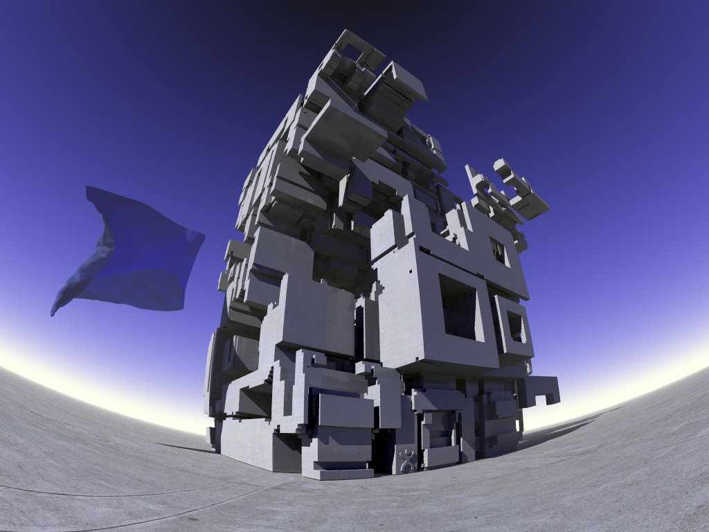Contrast! Hard geometric structure VS. the softness of a piece of fabric blown