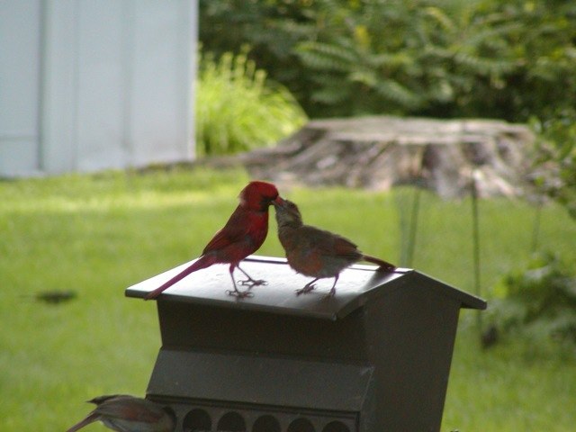 > A very nice image! Actually, mated pairs Cardinals often feed each other.