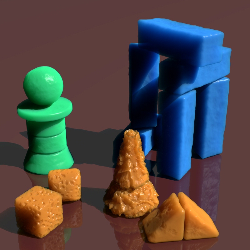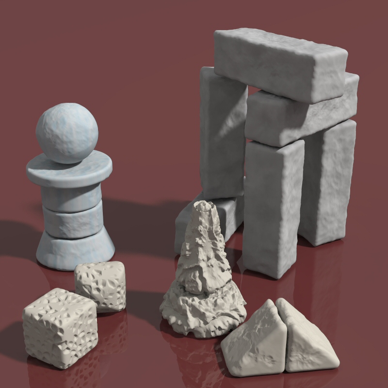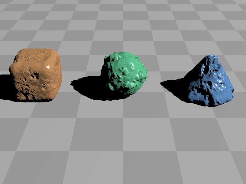 shapes like bricks, spheres and so on, and applying surface displacement such