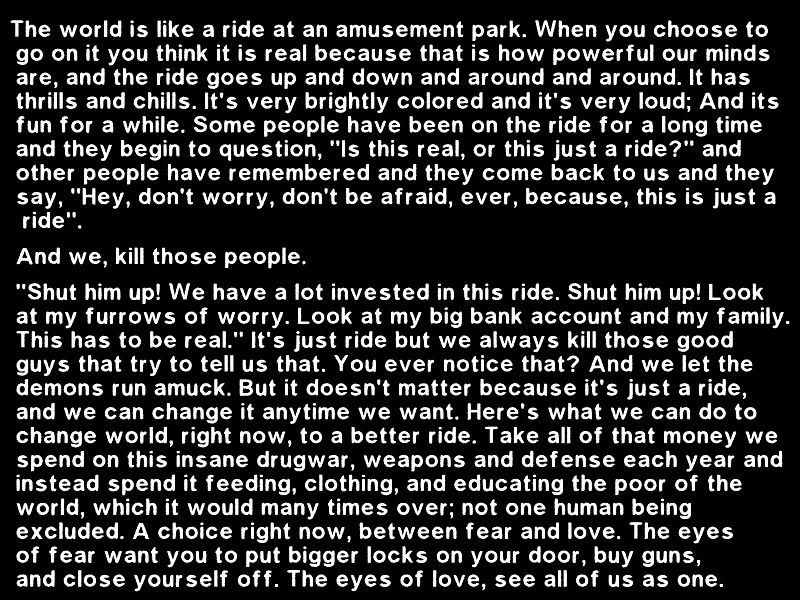 you only get to ride once, ever. All the more reason we shouldn't be killing