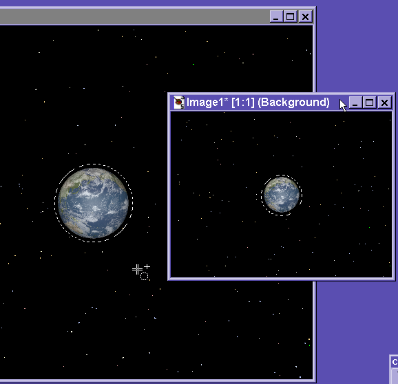 circles 1to1 drawn around rendered earth by paint program.