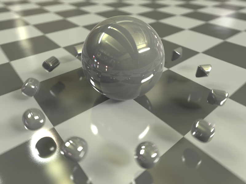 dents). The floor is a blurry reflector as well.