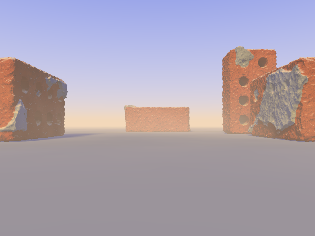 The bricks are plain vanilla CSG objects at the core (boxes, tori and