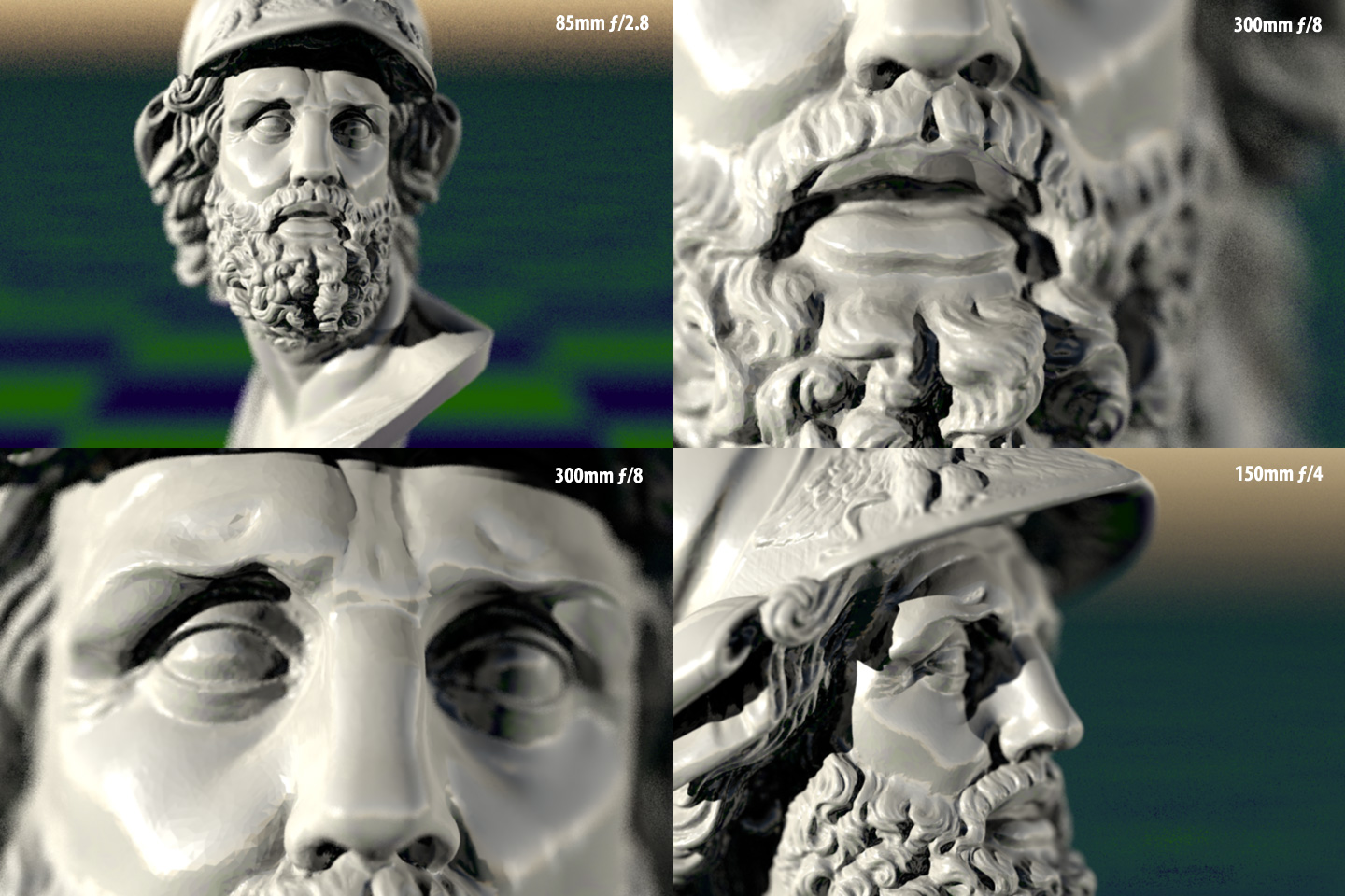 I'm using a 35mm camera approx 500mm from the bust (which is scaled to be about