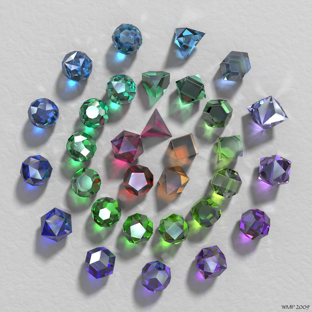 > > These are the Platonic, Archimedean and Catalan solids. How many can you name