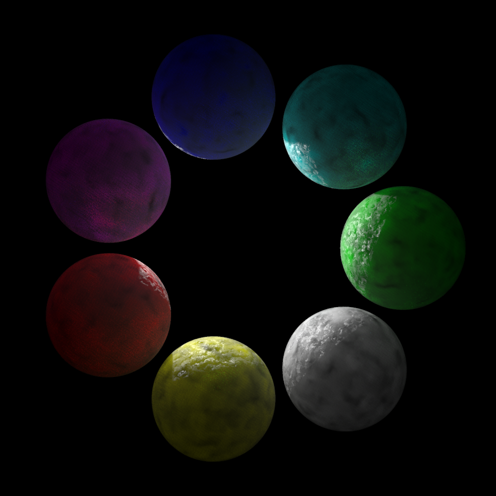 object { MakeSphere(sslt_aqua)    translate x*2.5 rotate z*360/7*1 }