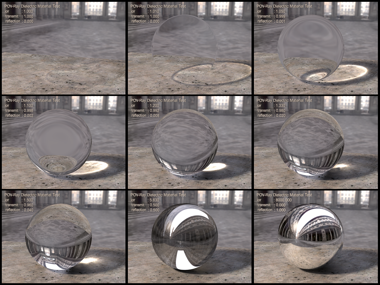 > simple POV-SDL setup for the following basic dielectric material in POV-Ray. The