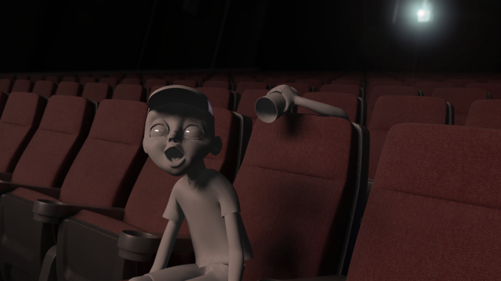 > > As the kid is watching the movie his prankster "friend" sneaks up behind to dump