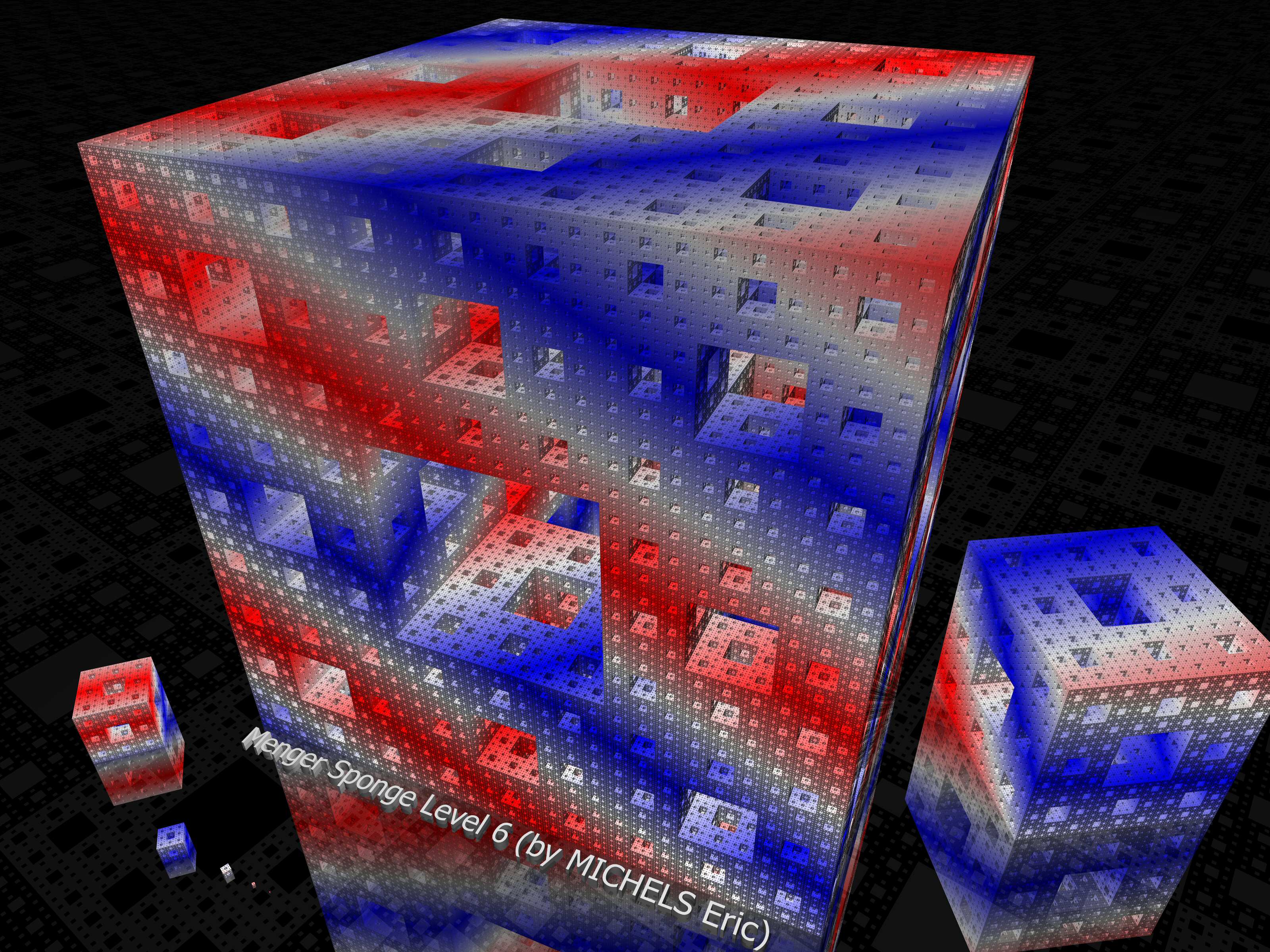 > The scene shows Menger Sponges going from Level 6 to 0.