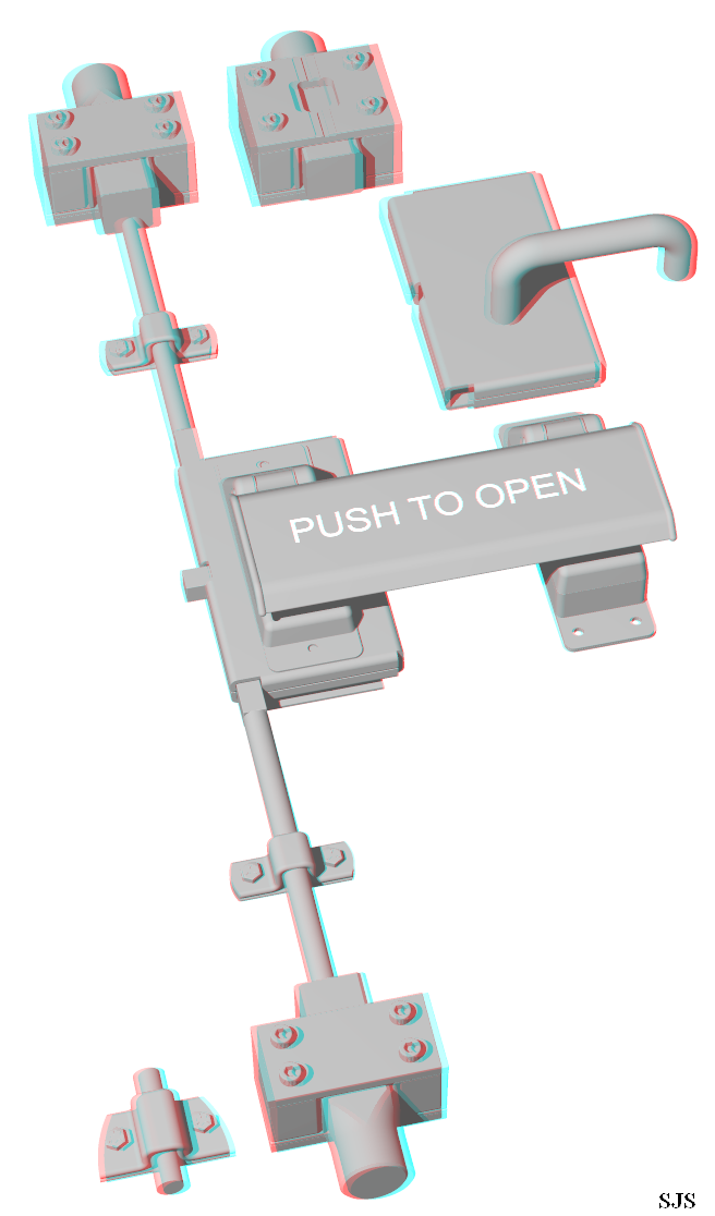Subject: Anaglyph (red/cyan), Door hardware