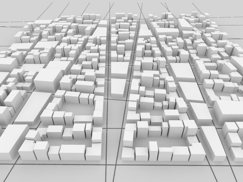 yet it only works on a plane. Projecting the buildings up to a surface should be