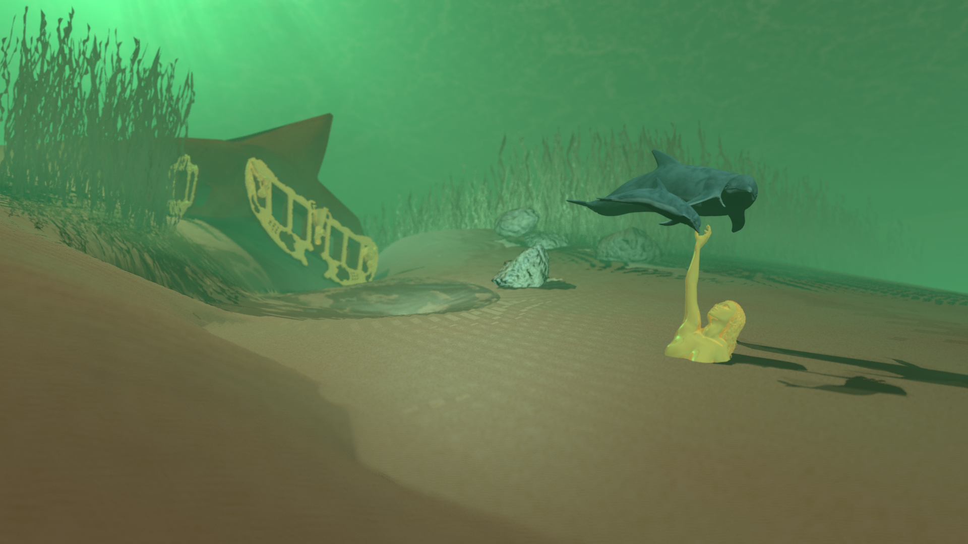 The 'overall' color cast of all the seas-floor elements should, I think, be a