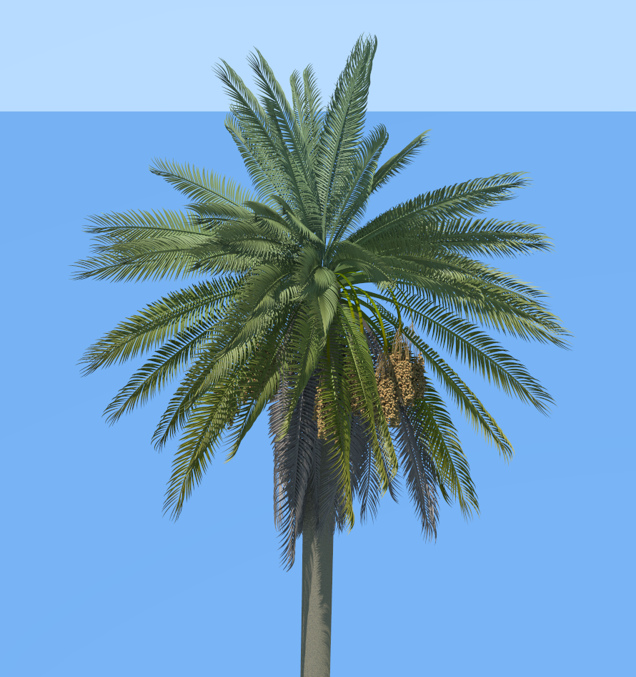 noise in the rotation of each leaf adds a lot to simulate real world palms.