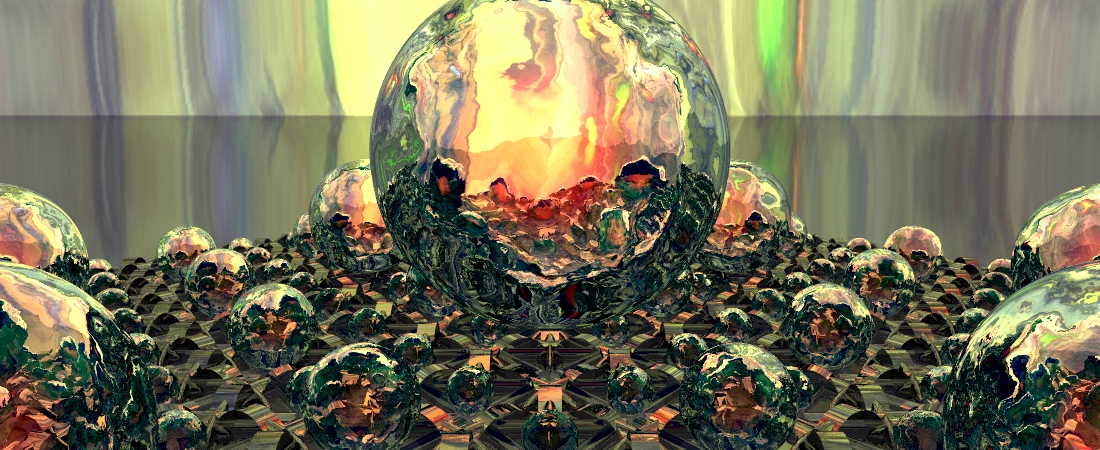 I see a horses head in the left side of the center sphere... :)