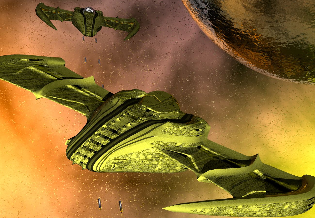 > >> spaceship under wings3D and render with PovRay. Some works on lasers,