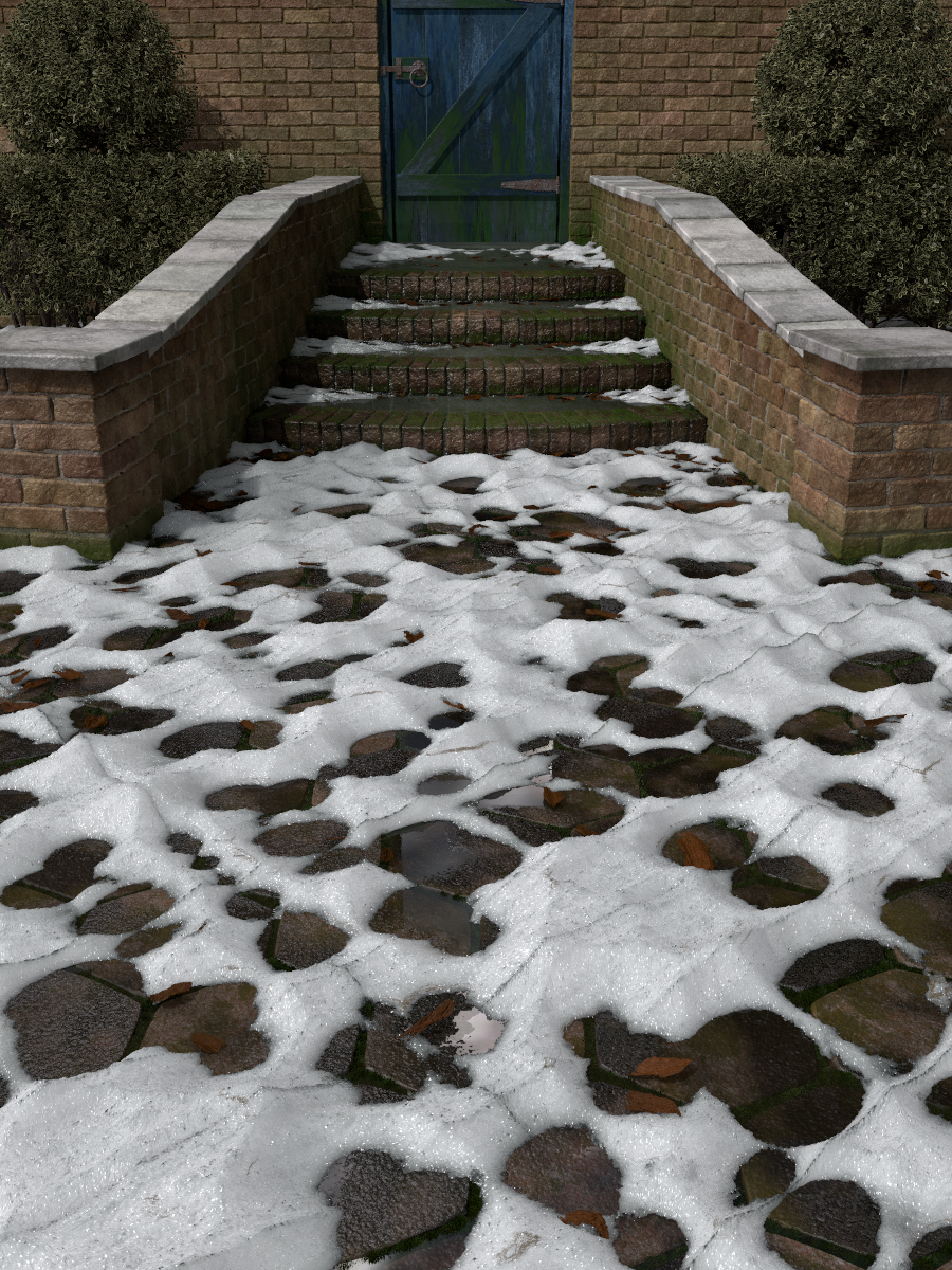 > Also, the snow needs to look more melted where it meets the ground.