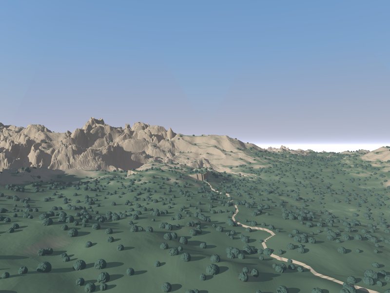 > What you posted looks similar to my POV-Ray 3.6.1 run, but the trees are in