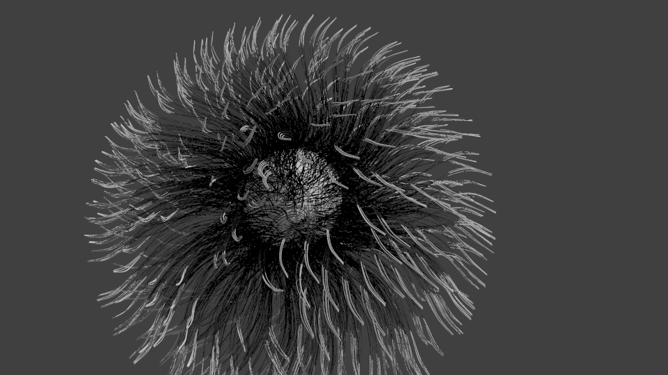 Hair in a blender are presented by the array from splines.