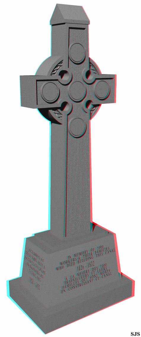 > A gray scale anaglyph viewable with red/cyan 3d glasses.