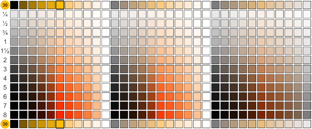 numbers along the left edge show the depth, in POV units, of the samples in each