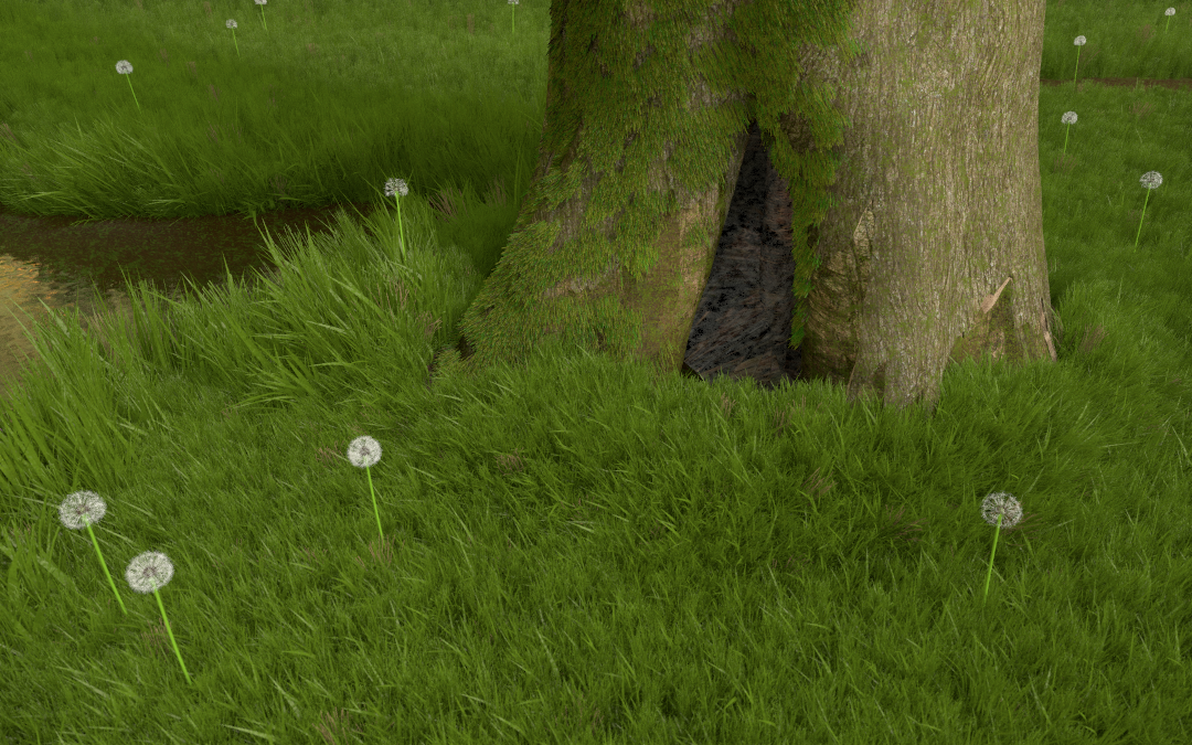 > The tree is made out of a blob, the grass is a macro using meshes and the