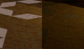 > the left side is without radiosity, the right side is with.  The primary texture
