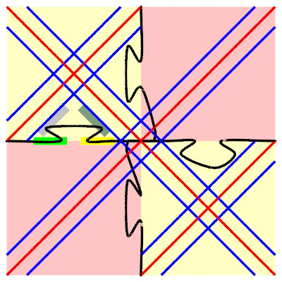 > centre of the tile (without entering the no-go zone of blue diagonal.