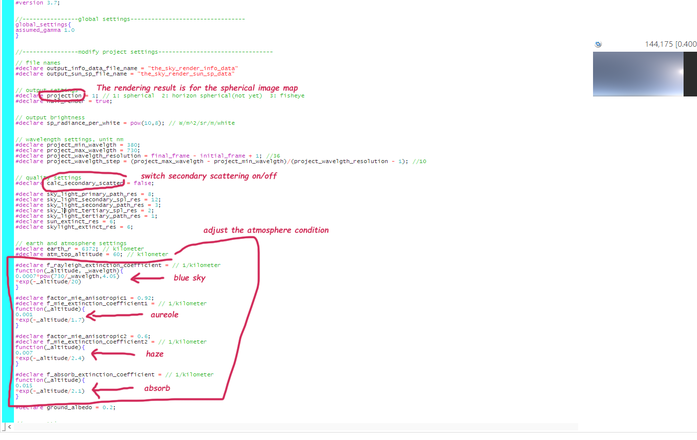 I explain the file. Open the 'sky_render enviroment.pov' you will see the screen
