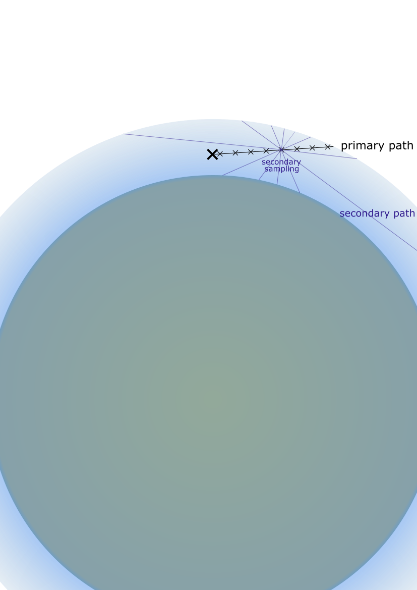 > output image generates a "primary path" to calculate the scattering sun light