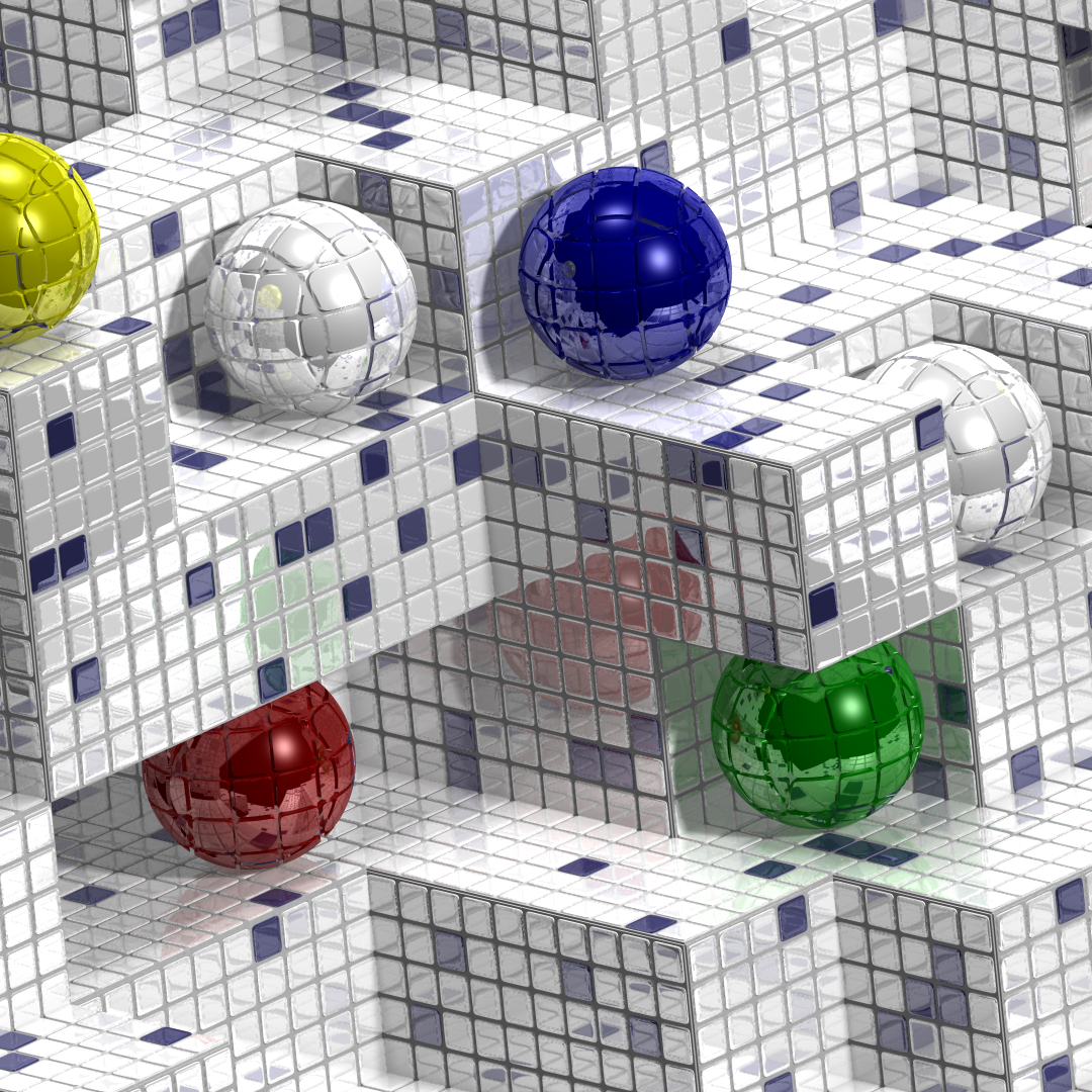 1.5 hours (two instances of POV-Ray running on an iMac 3.3 GHz Intel Core i5 w/