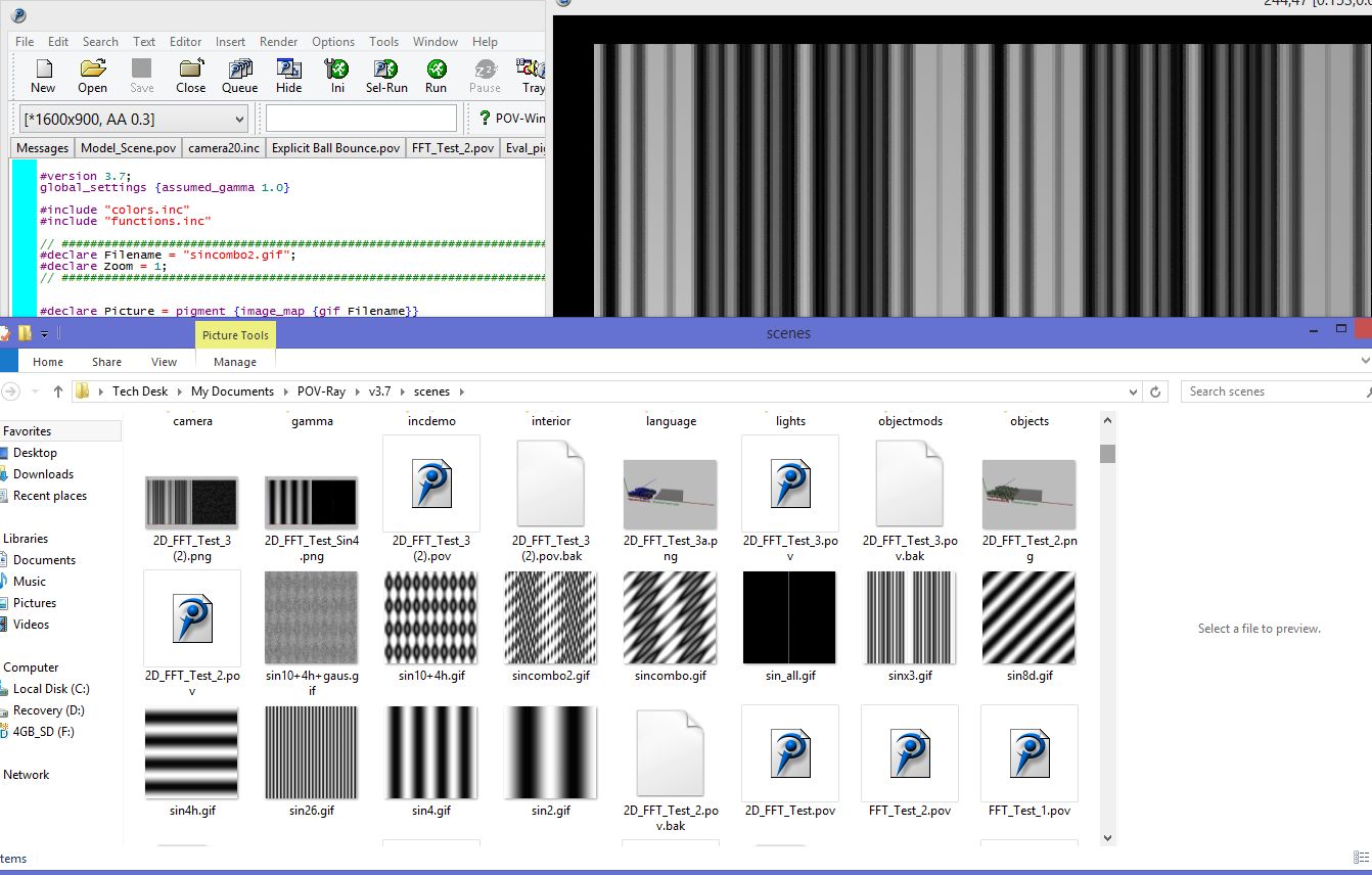 Notice that the image rendered in the POV-Ray window (upper right) is NOT the