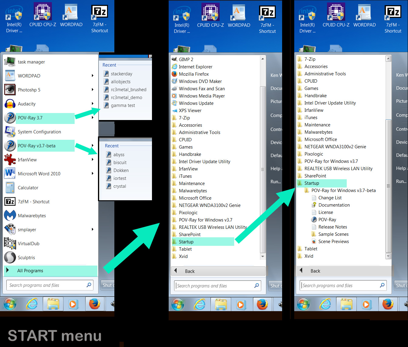 of the Windows START menu (*before* I moved the offending folder.)