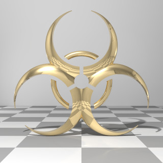 object {BiohazardSymbol texture {pigment {color <204, 255, 0> / 255} finish