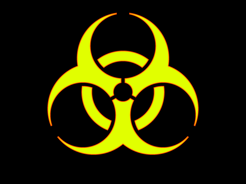 object {BiohazardSymbol texture {pigment {color <240, 75, 0> / 255} finish