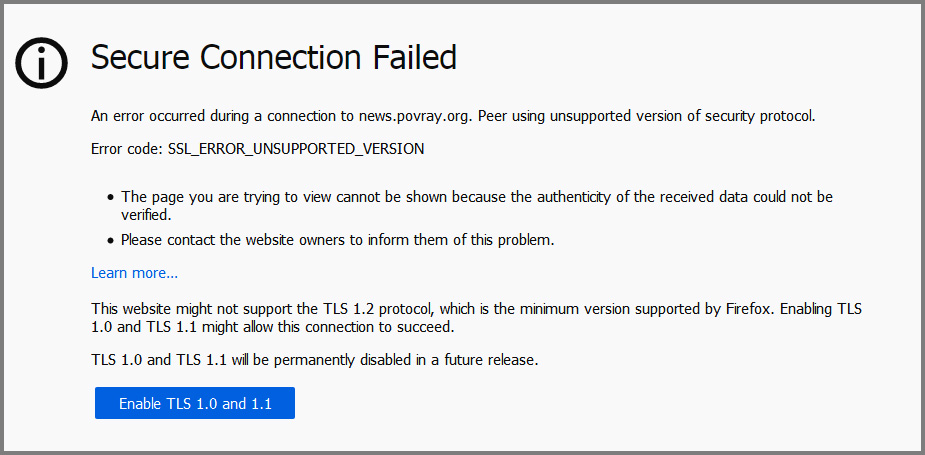 that the POV-Ray newsgroup page(s) need to be upgraded to the TLS 1.2 protocol,