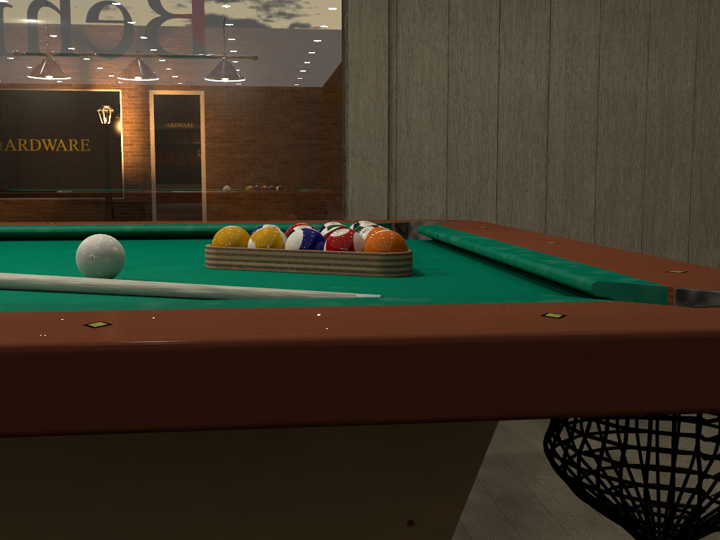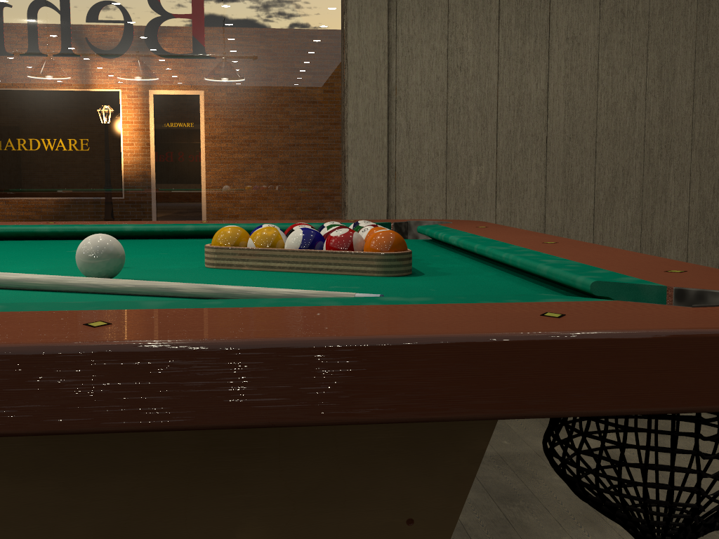 > > The pool table is a bit too shiny, but I like the reflection of the store across
