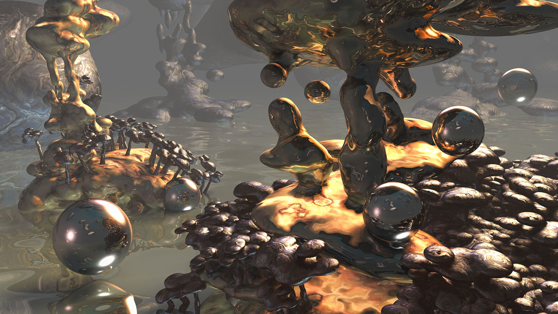 Abstract blob landscape rendering using macros and trace loops to control plant form.