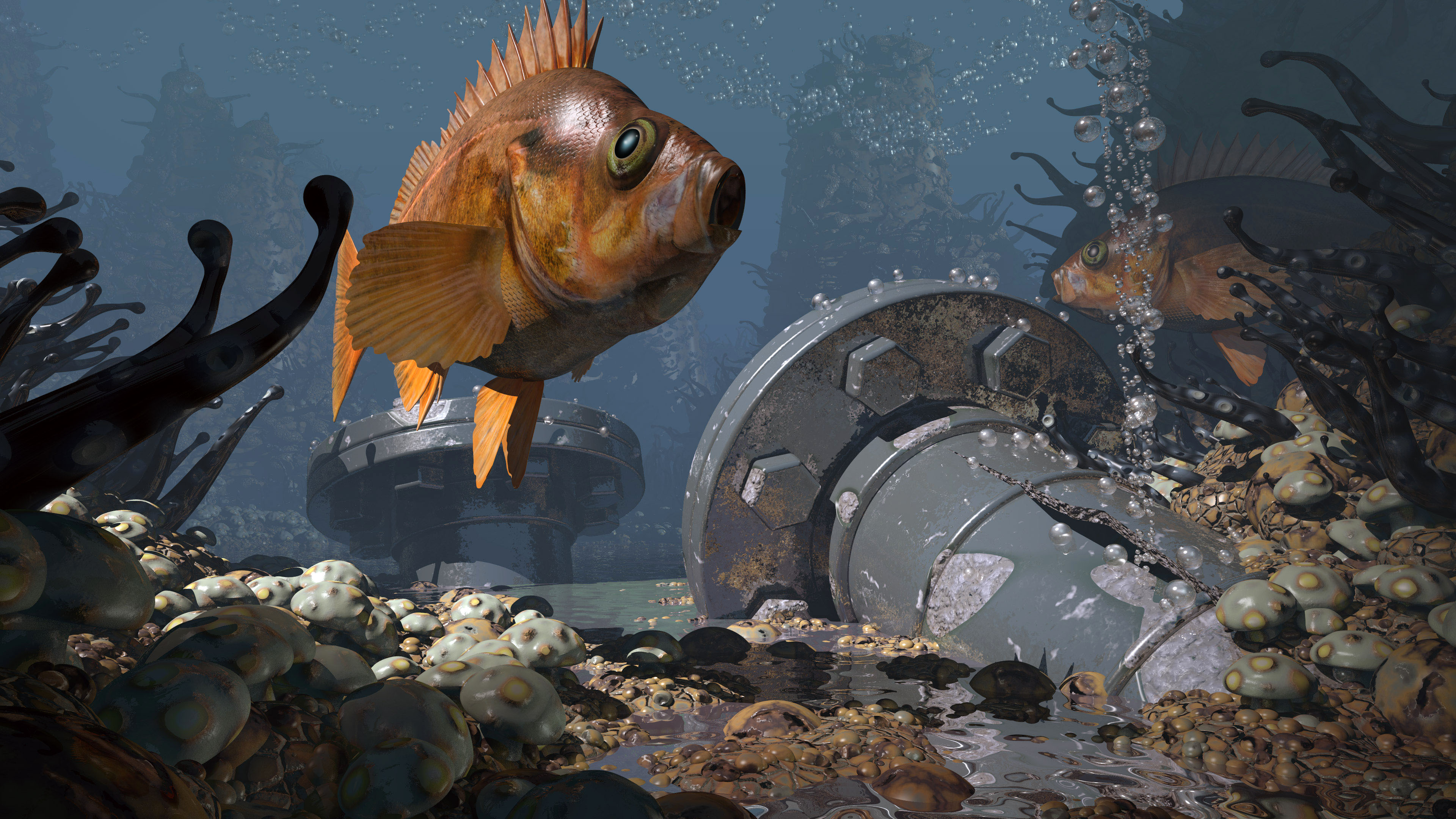 > Rendering of fish and pipe flange parts. I'll post the scene file once I'm done