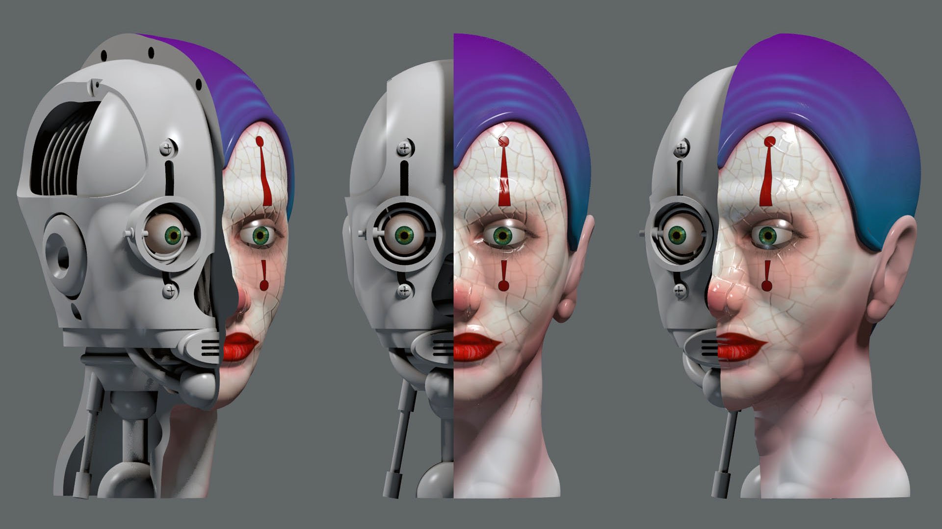 > Jack in the box head - 1/2 with a mechanical interior. Default material on mech> forms. Work in progress.> Miller