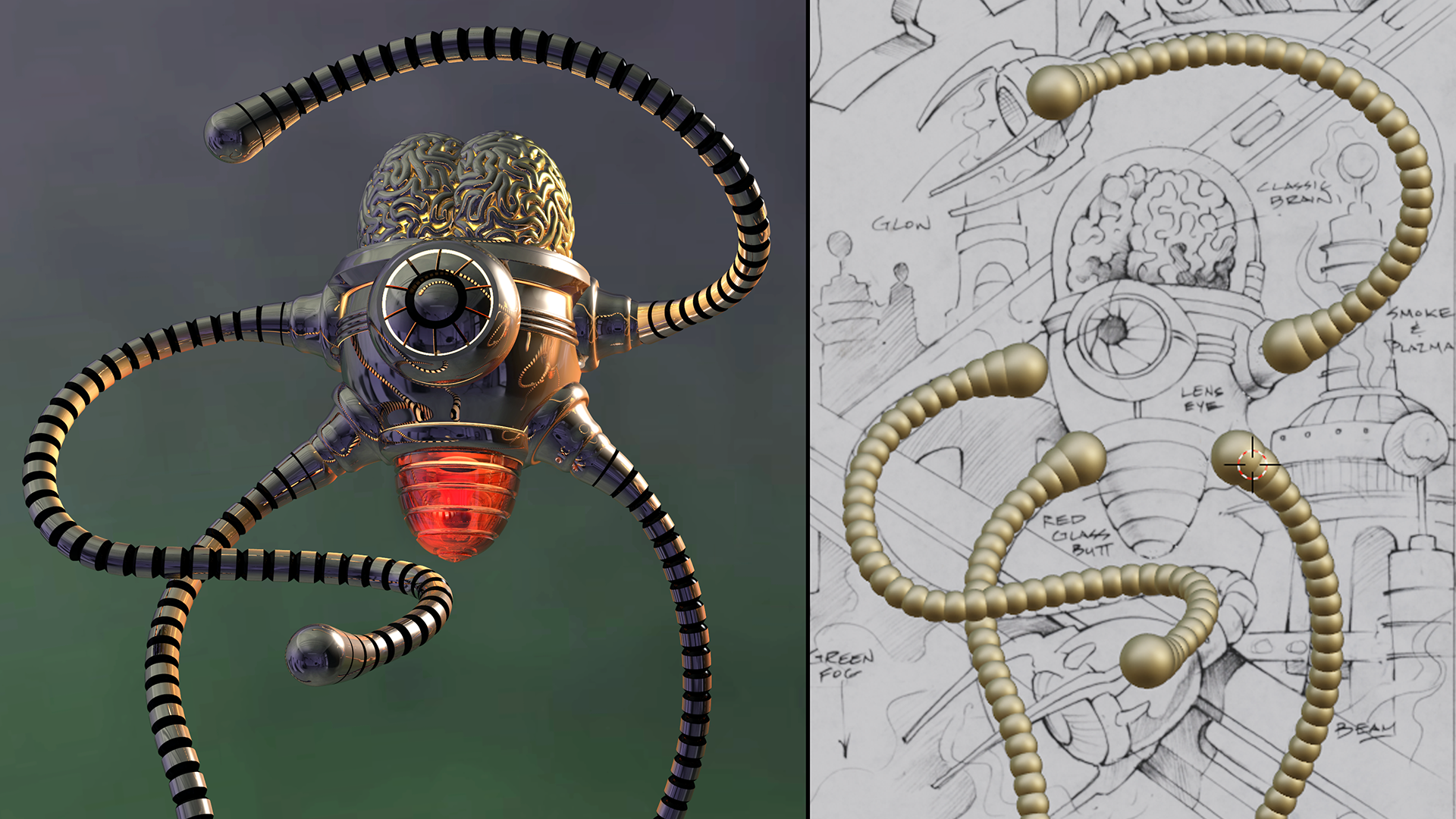 > The tentacle arms are an intersection using a spline sweep that clips spheres