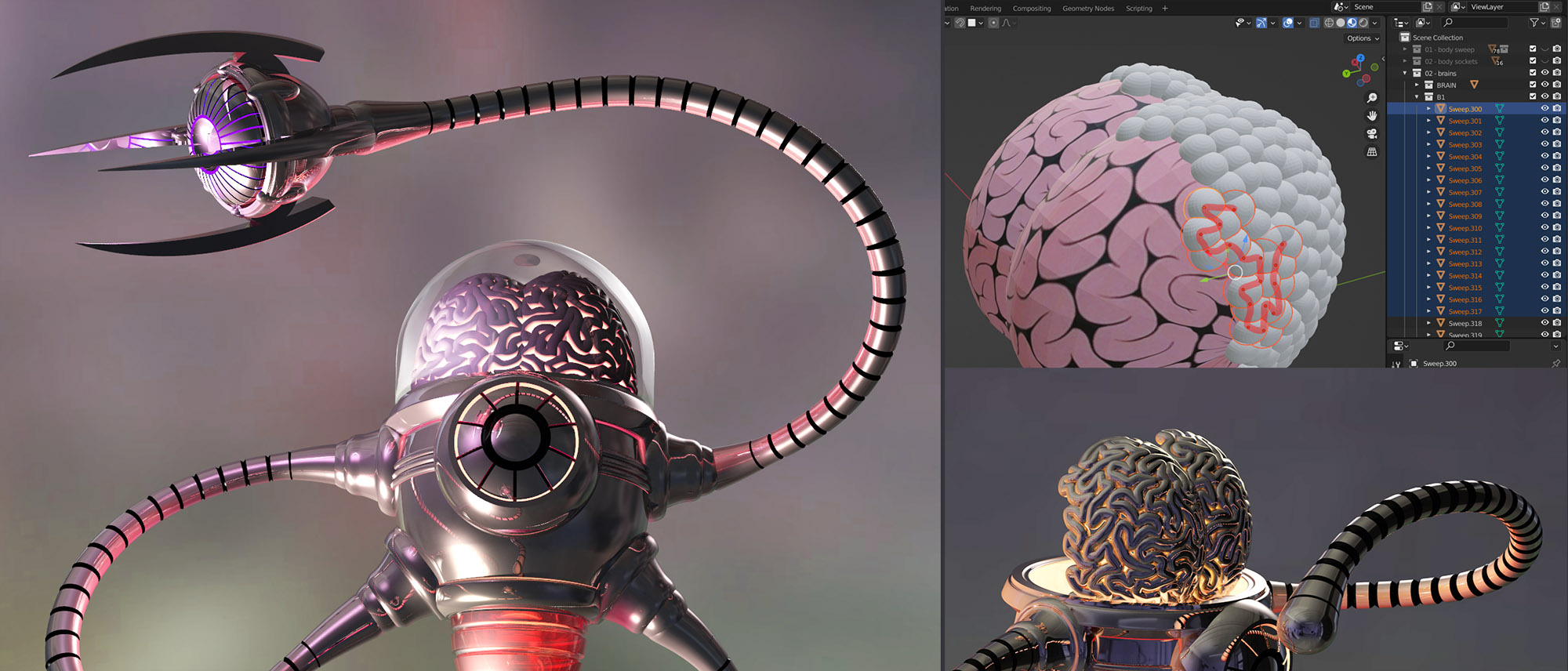> > a capture of the brain in Blender. Still tweaking a bit. I'm only modeling what