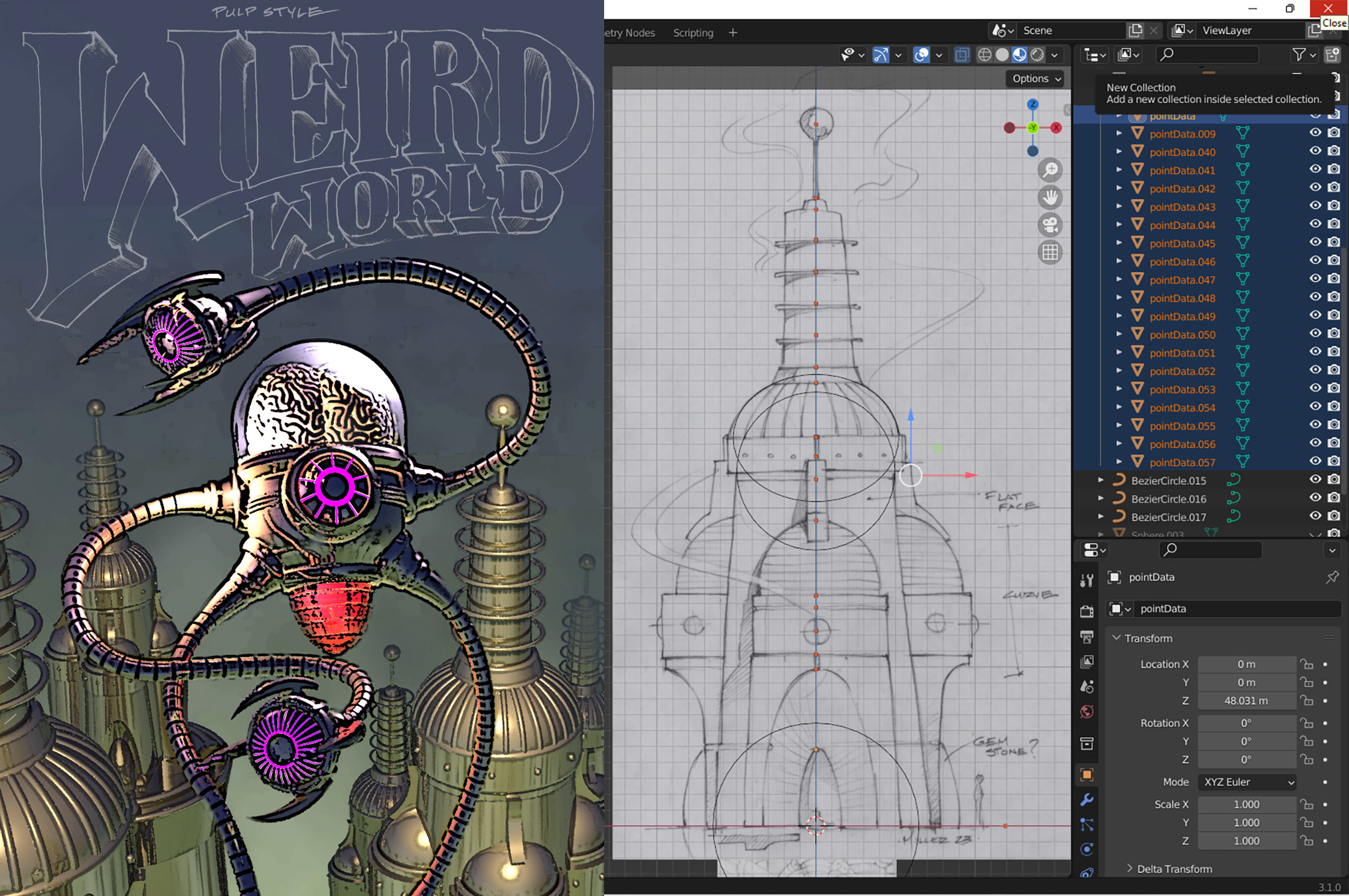 > Blender... I convert the points into 'mixed array' to be used in a construction