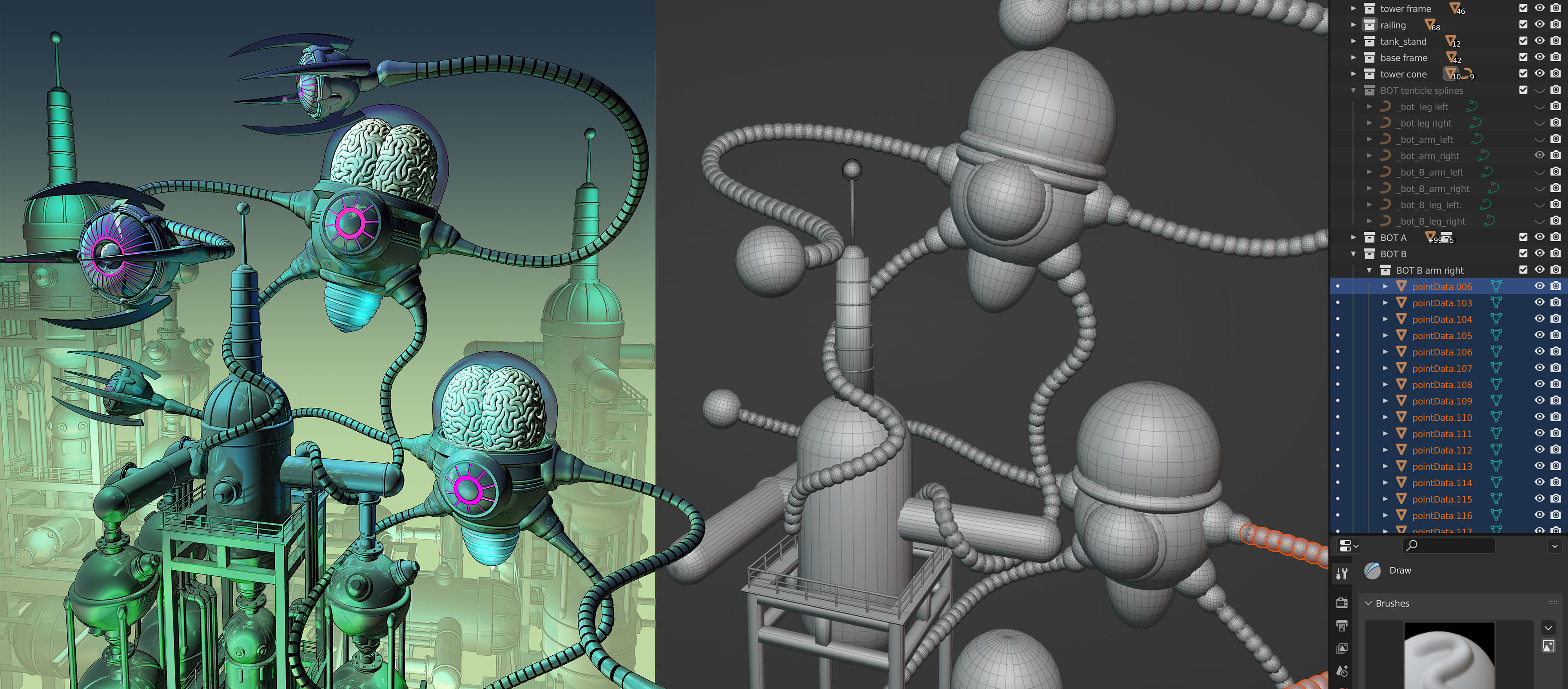 Brain attack progress. Layered POV renderings in Photoshop with Blender object data. Miller