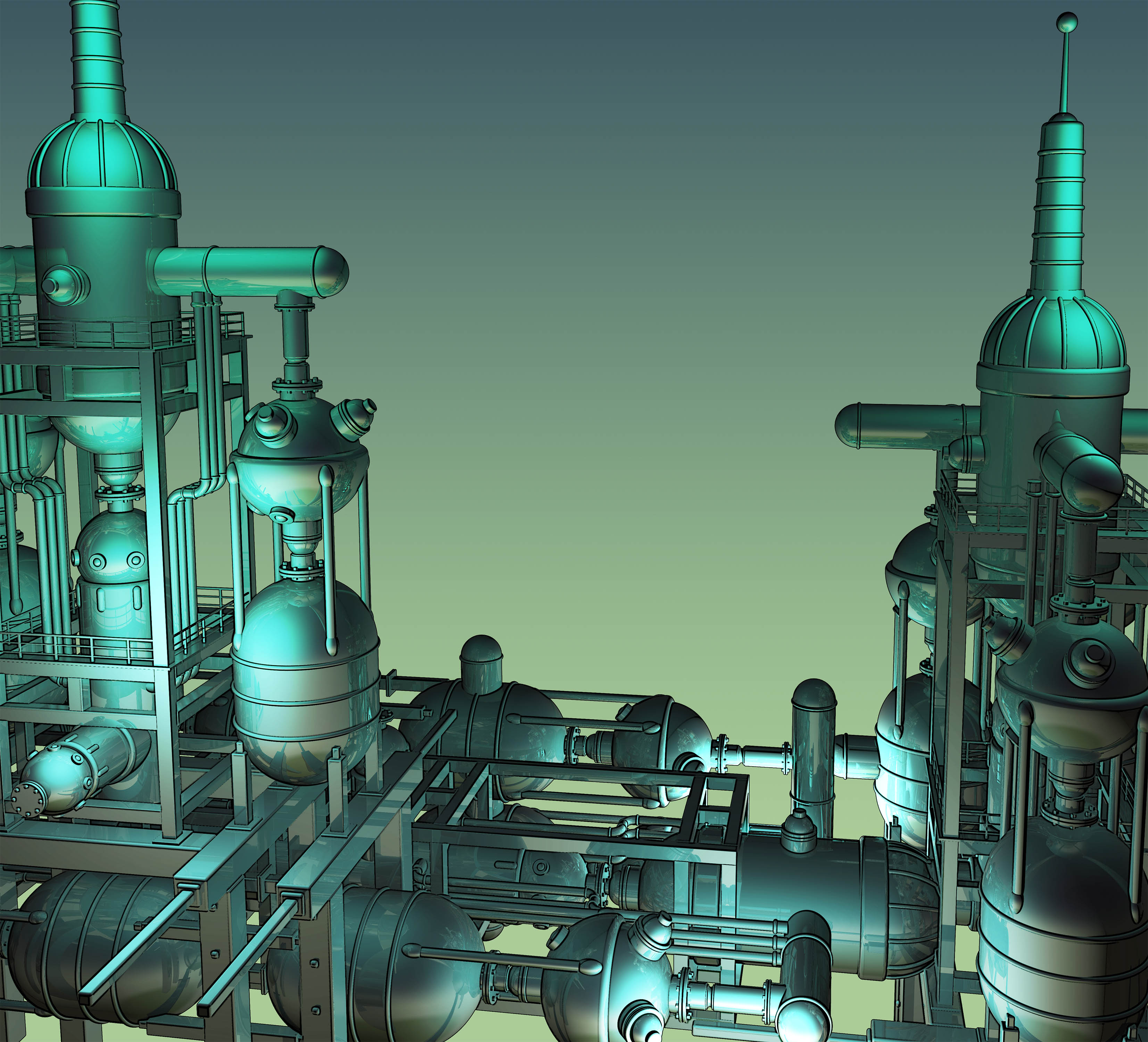 POV pipe rig rendering used as a background plate for Brain Attack image. Miller