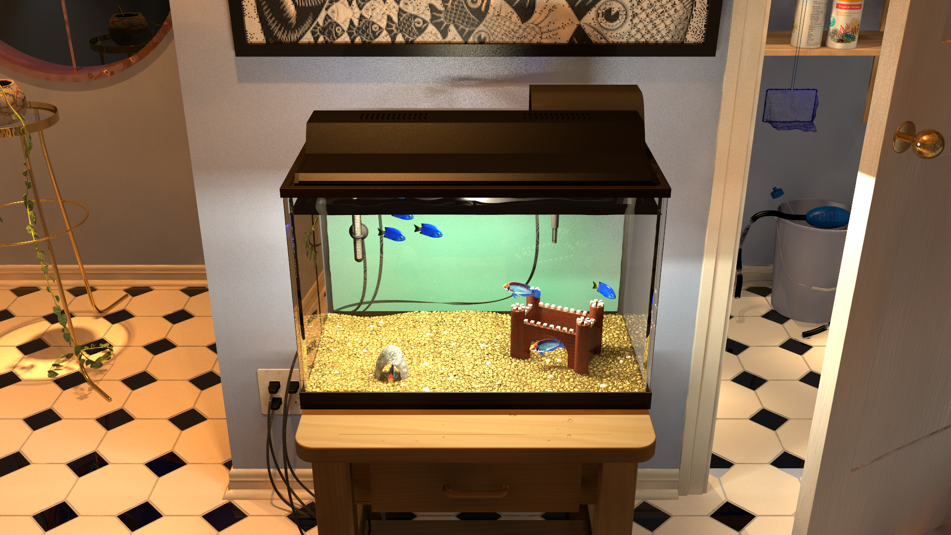around with modeling my aquarium, including the gravel bottom, the water