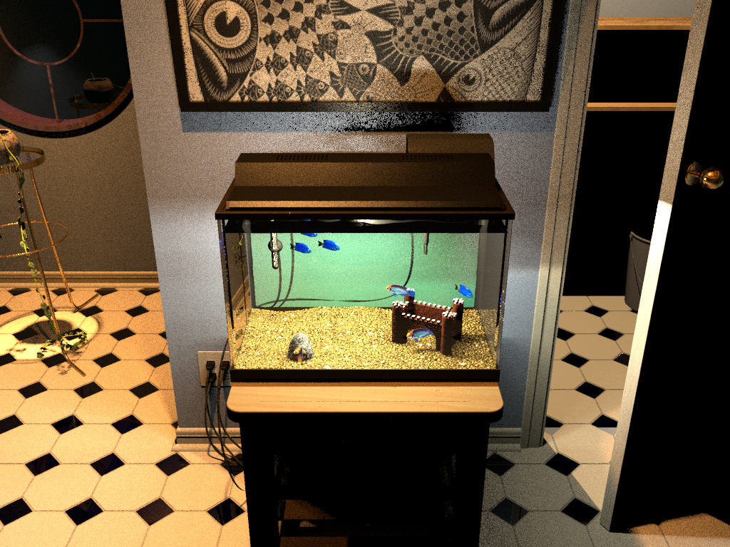 > around with modeling my aquarium, including the gravel bottom, the water