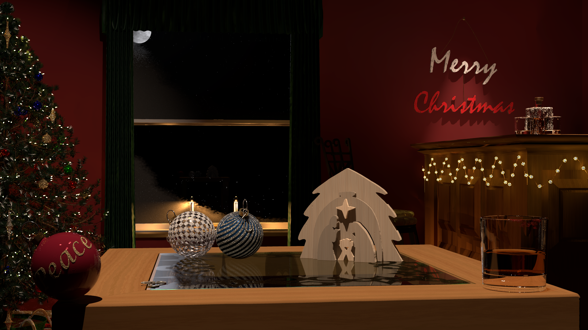 Here's the final rendering of the holiday scene. For reasons I am still trying
