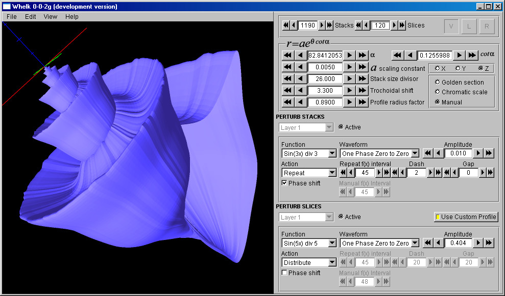 > Whelk uses various sine-wave deformations that modify the mesh in layers. Each