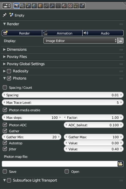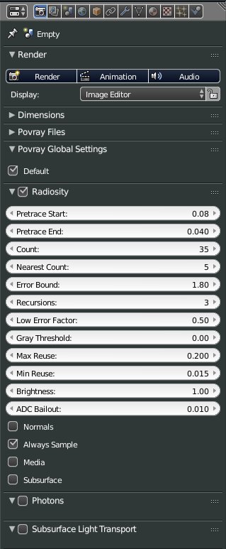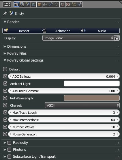 > Here I will publish the screenshots displaying the Povray-3.7 elements in