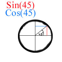 The radius of this circle is 1. With sinus and cosinus is it possible to